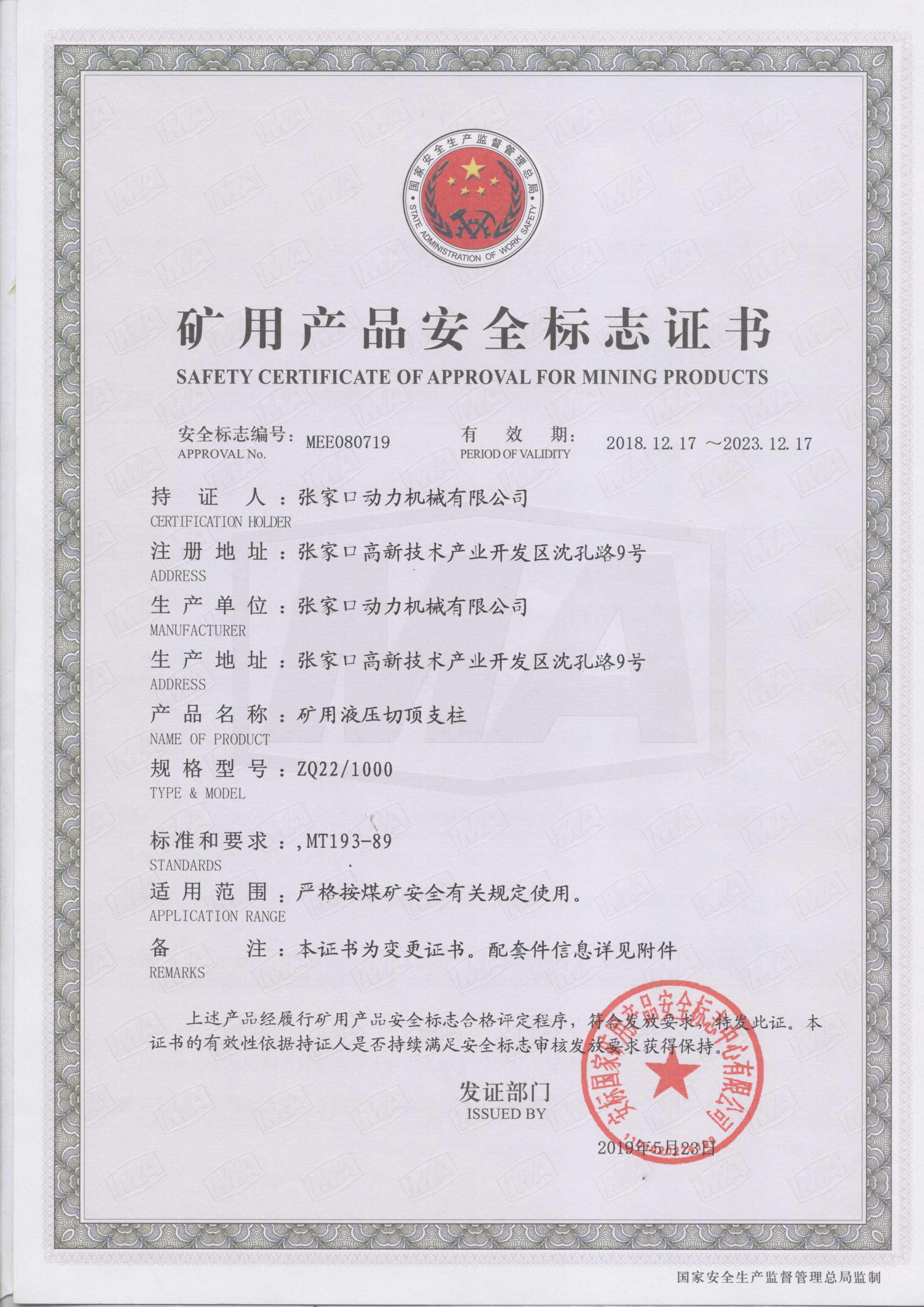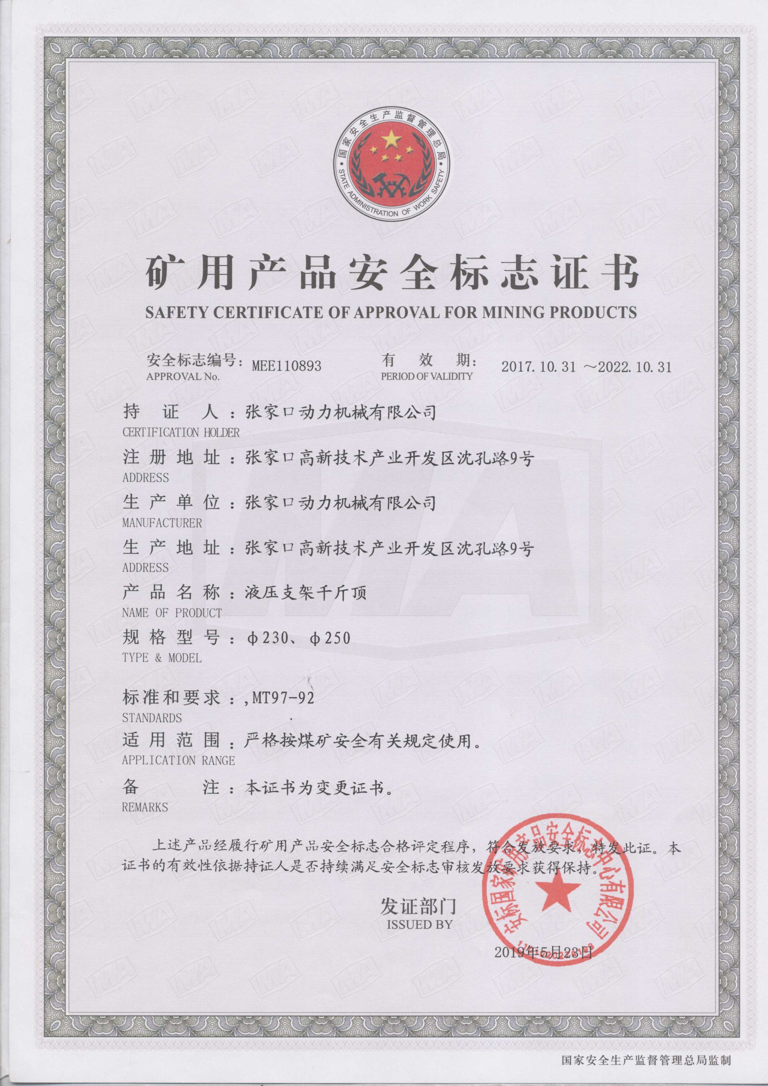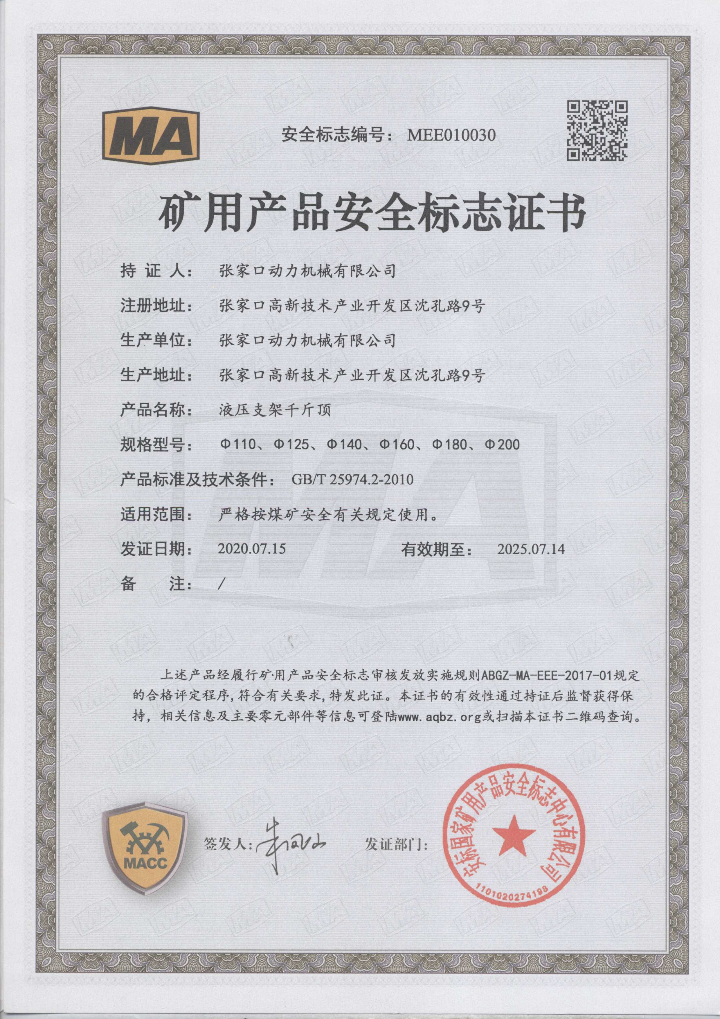 張家口動力機(jī)械有限公司生產(chǎn)資質(zhì)展示