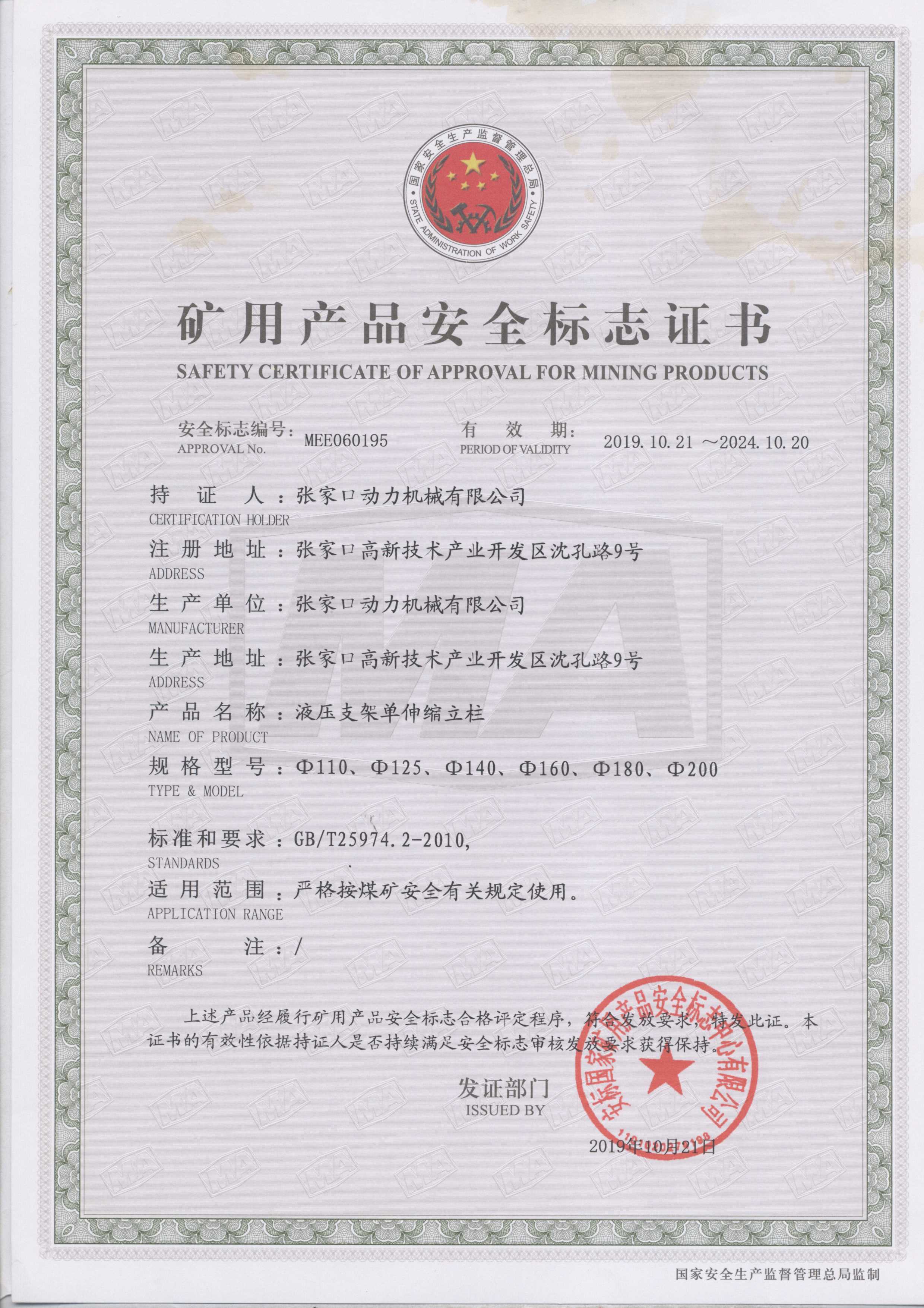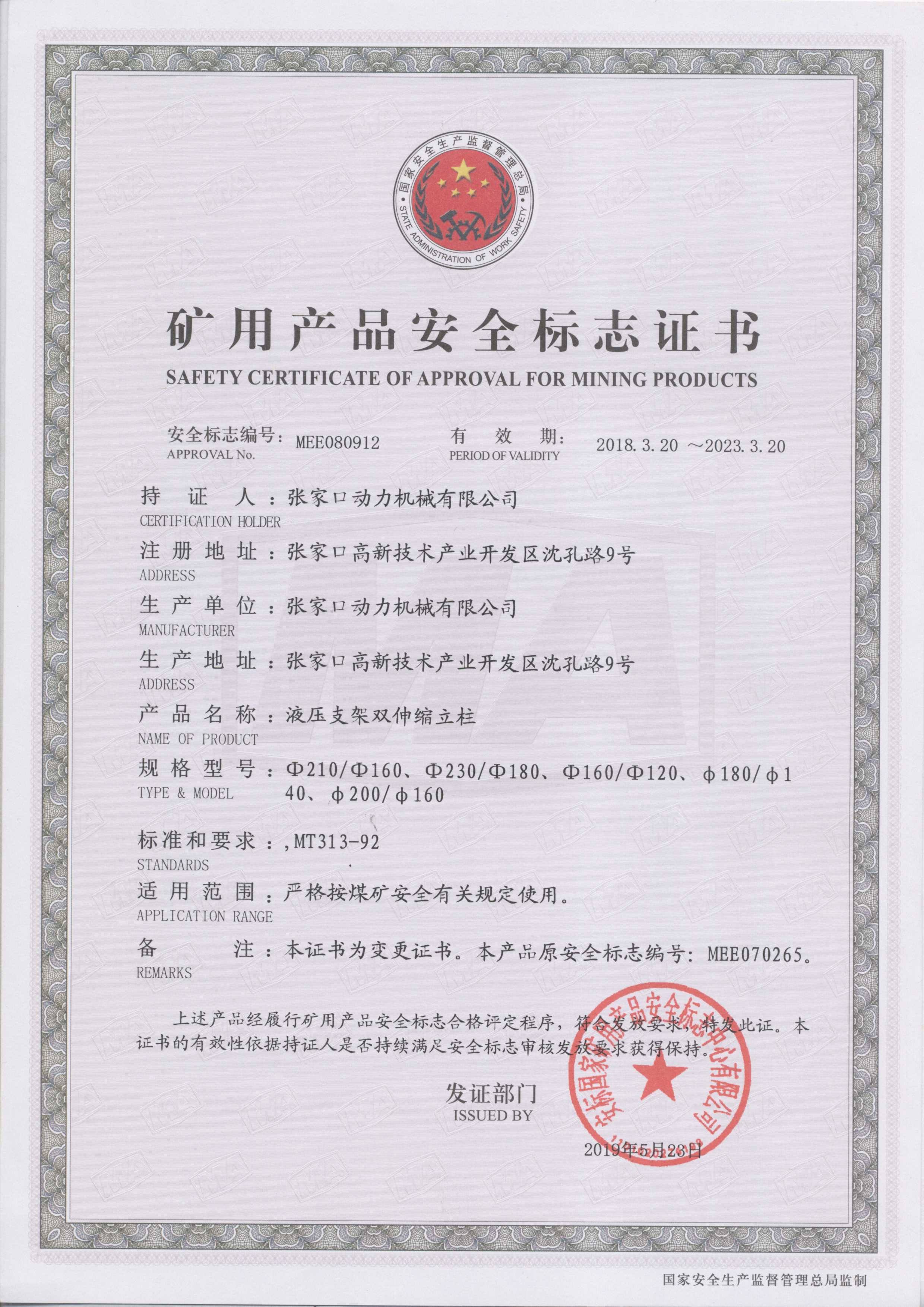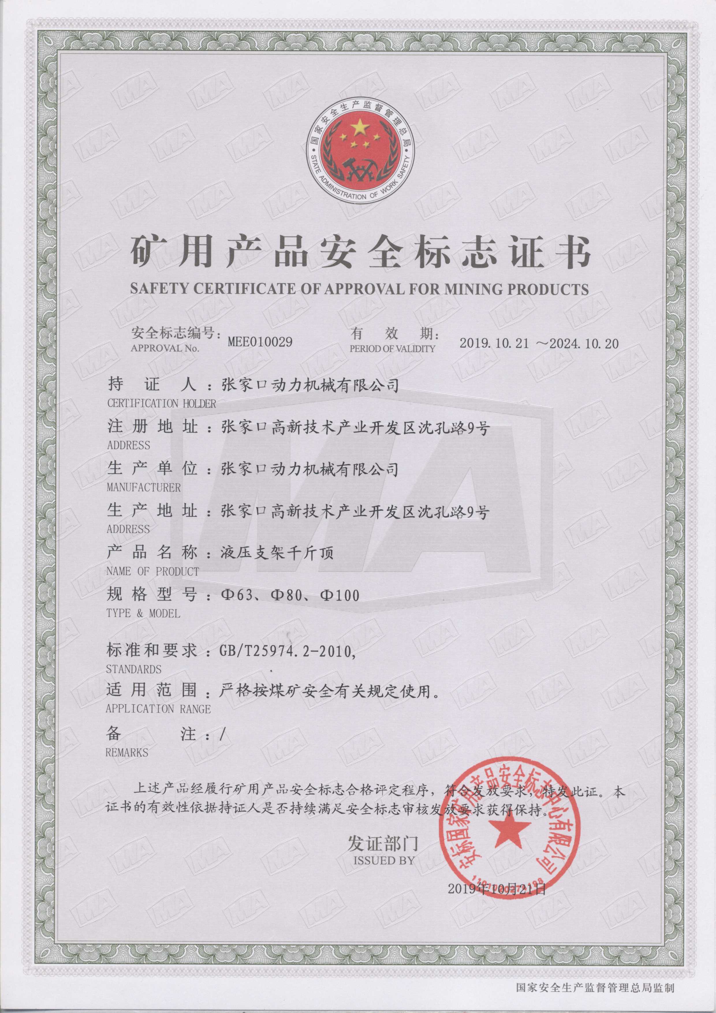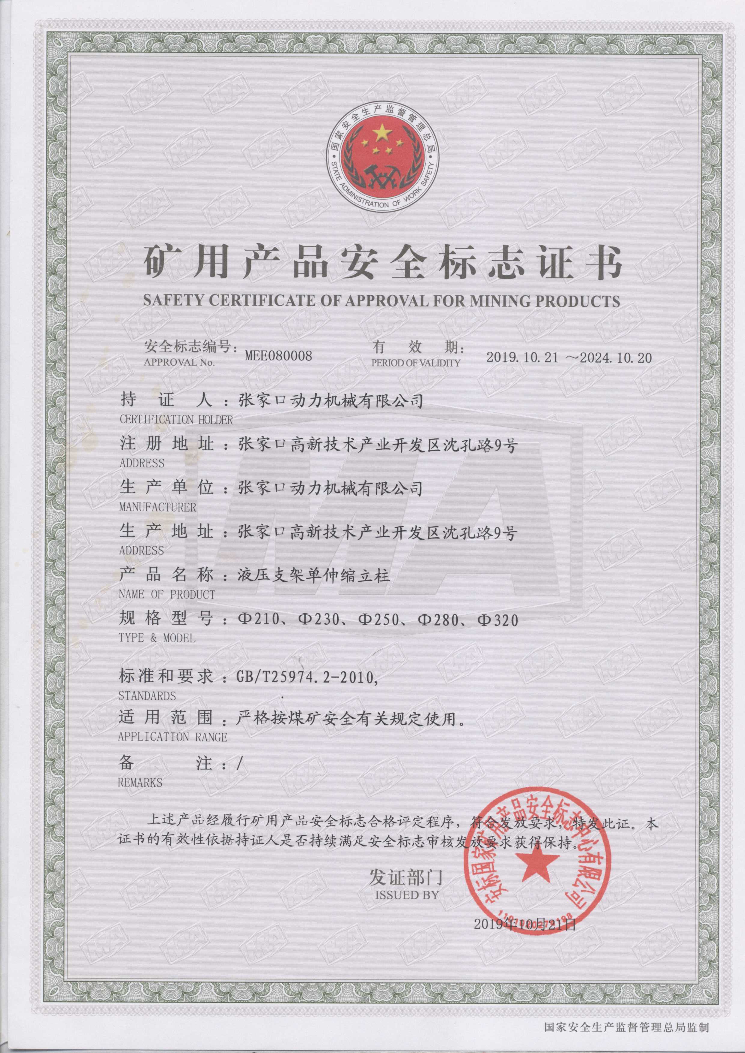 張家口動力機(jī)械有限公司生產(chǎn)資質(zhì)展示